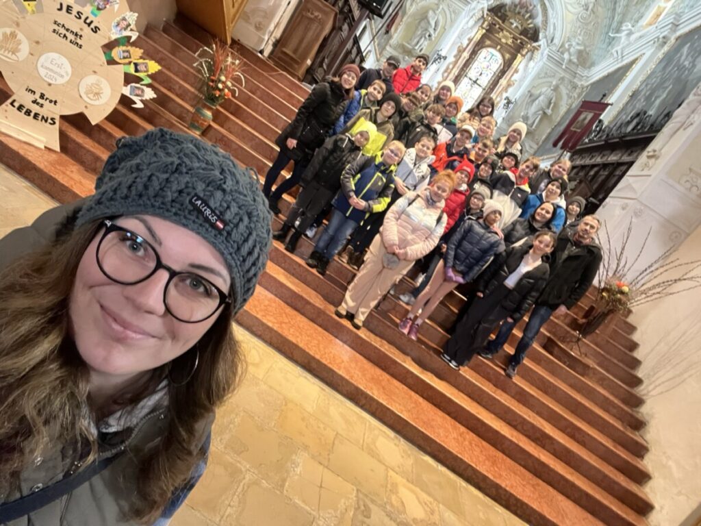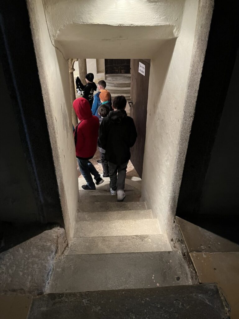 Im Zuge des Themenunterrichts für das Lernfeld „Unten“ besuchten die Schülerinnen und Schüler der 2. Klassen mit drei Begleitlehrern die Stiftskirche in Ardagger Stift. Unter der großartigen und kreativen Führung von Pastoralassistentin Andrea Mühlberghuber besuchten sie die einzigartige Unterkirche/Krypta, den Kreuzgang mit Innenhof und den Taufraum.