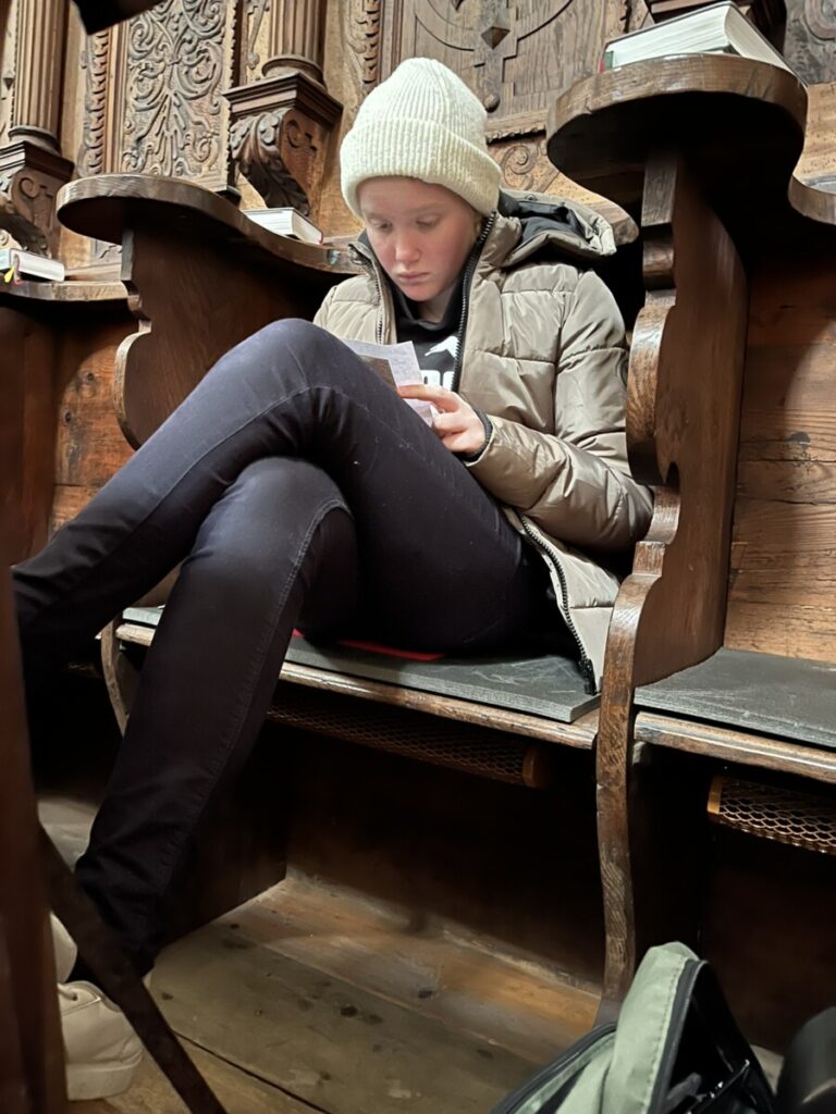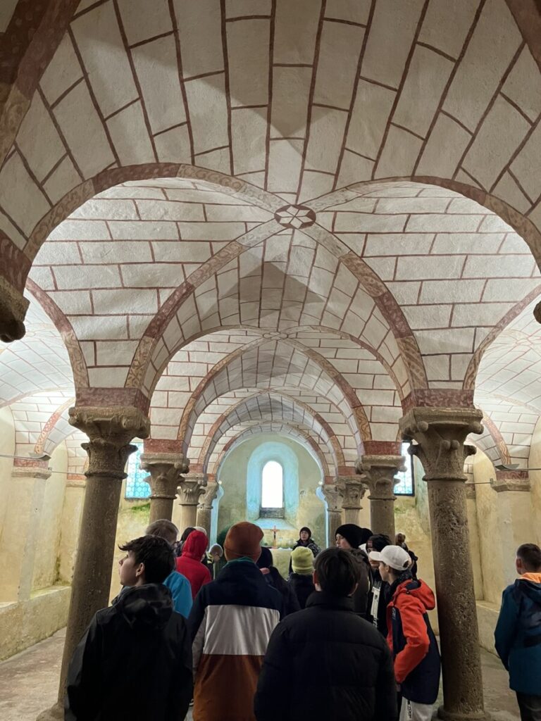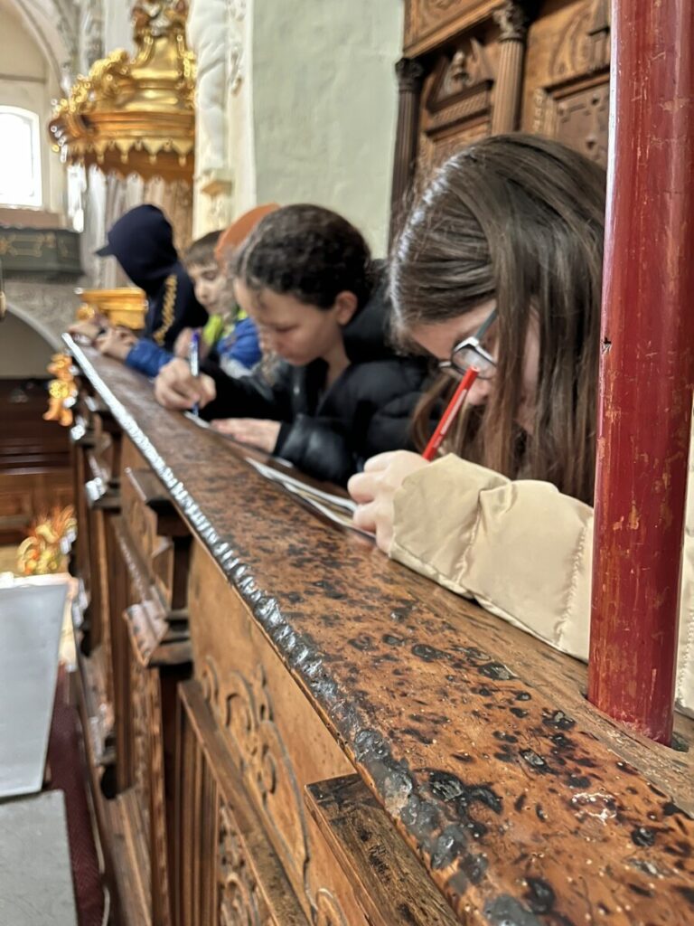 Die Krypta und ihr Altar wurden früher für Messen für die Priester des Chorherrenstiftes genutzt. Sie ist nach Osten ausgerichtet, um so auf Ostern und die Auferstehung hinzuweisen. Sie besteht aus 7 Säulen-Paaren, von denen das erste Paar aus Marmor besteht. Heute wird die Unterkirche aufgrund ihrer tollen Akustik für kleinere Konzerte und Veranstaltungen genutzt. Anschließend wurde noch das besondere Margareten-Fenster besichtigt. Ein kleiner Spaziergang durch den Ort und der Besuch am Spielplatz bildeten den Abschluss dieses Lehrausgangs.