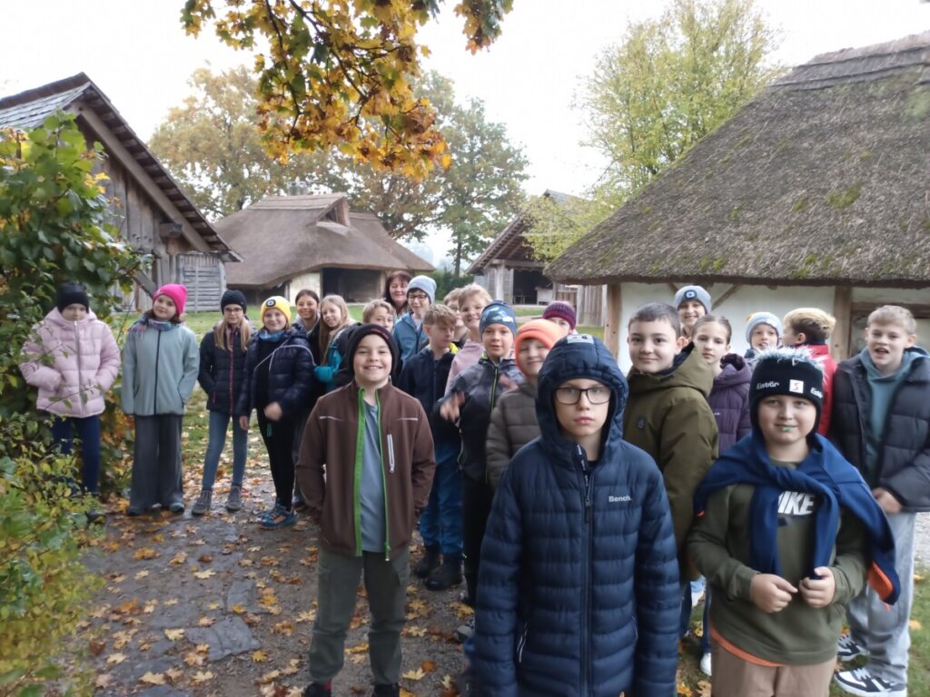 Bei herbstlichem Wetter lauschten die Kinder aufmerksam den Erzählungen während der Führung durch das Freilichtmuseum und erfuhren viel über die Architektur und Lebensweise der Kelten.