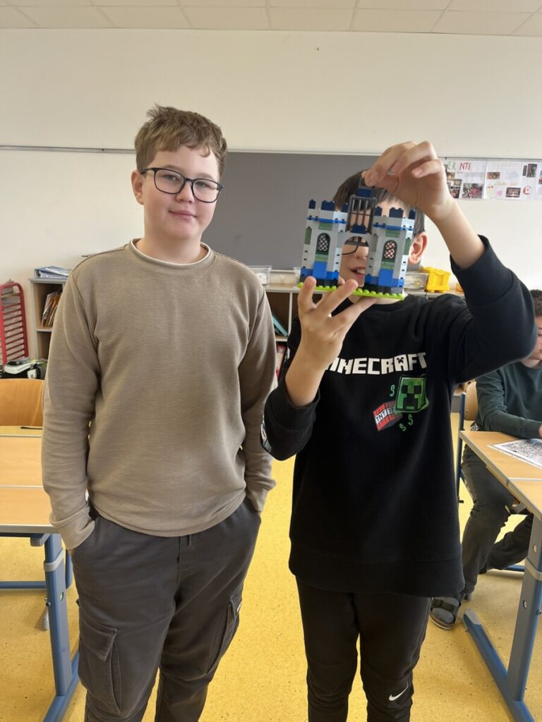 Im Deutschunterricht der zweiten Klassen wurde in den letzten Wochen nicht nur gelesen und geschrieben, sondern auch gebaut, getüftelt und ausprobiert. Mit zahlreichen über 30 LEGO-Bauobjekten verwandelten sich die Klassenzimmer in kreative Werkstätten.