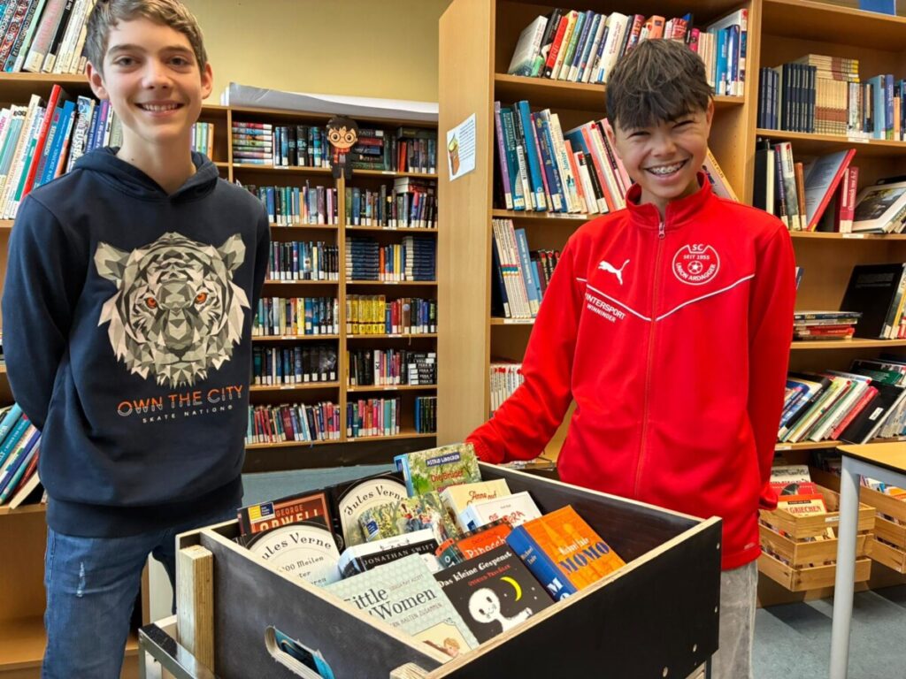 Auf Anfrage der Bibliothek wurden von Samuel und Dominik aus der 3A im Werkunterricht aus Materialresten eine Kiste zur besseren Organisation der Bücherrückgabe gebaut. Das Ergebnis kann sich nicht nur sehen lassen, darüber hinaus verfolgte das Projekt den Gedanken der Nachhaltigkeit, indem das verwendete Holz anstatt dem Mistplatz einer neuen Verwendung zugeführt wurde. Der Motivationsfaktor bei den Schülern etwas für die Schuleinrichtung anzufertigen, war besonders hoch.