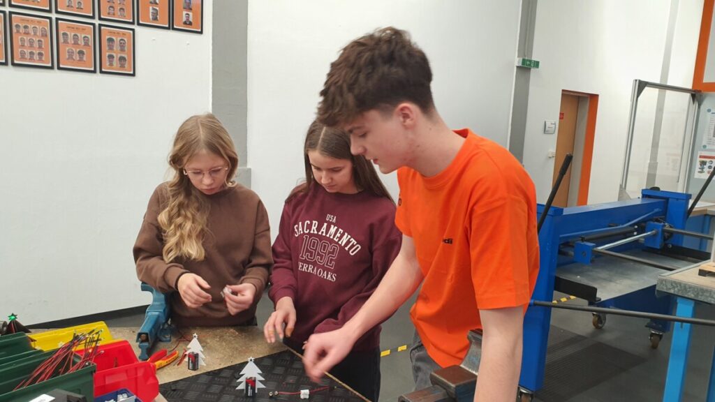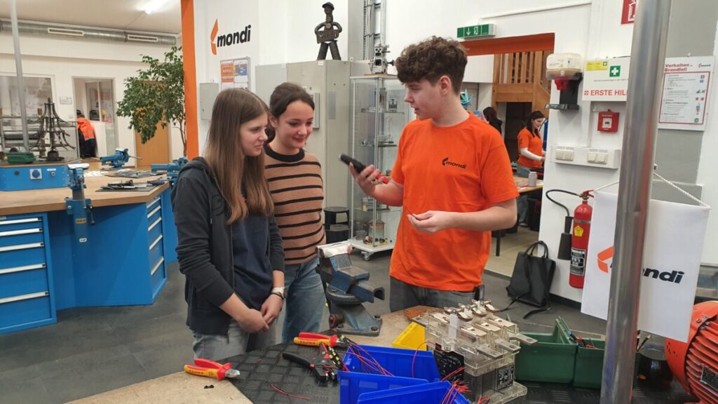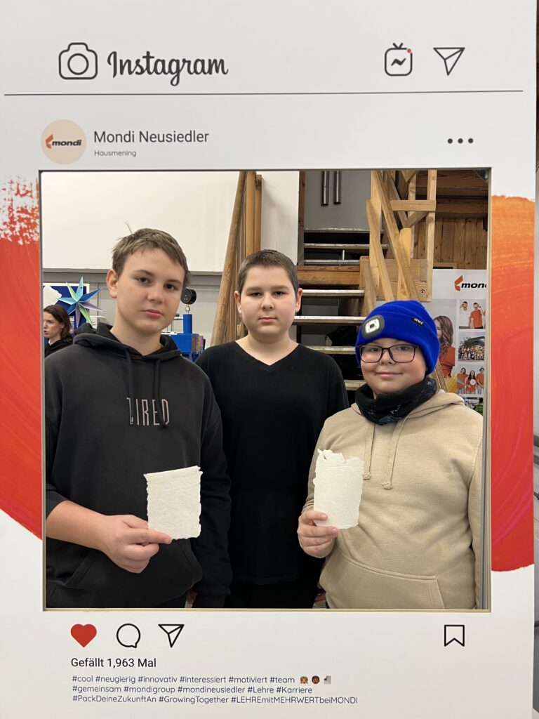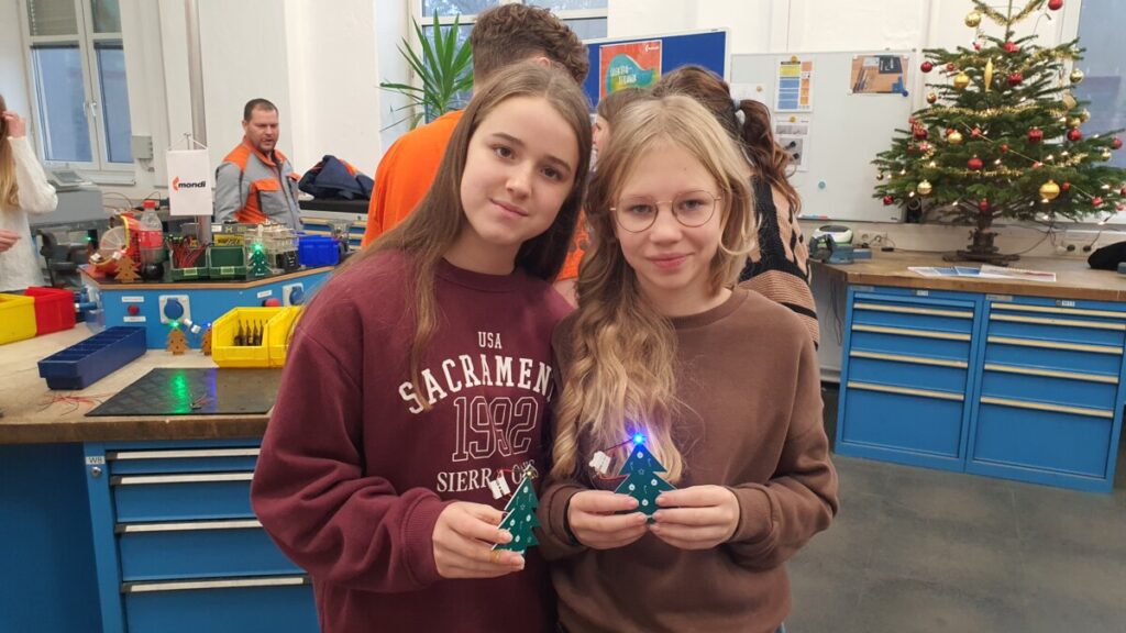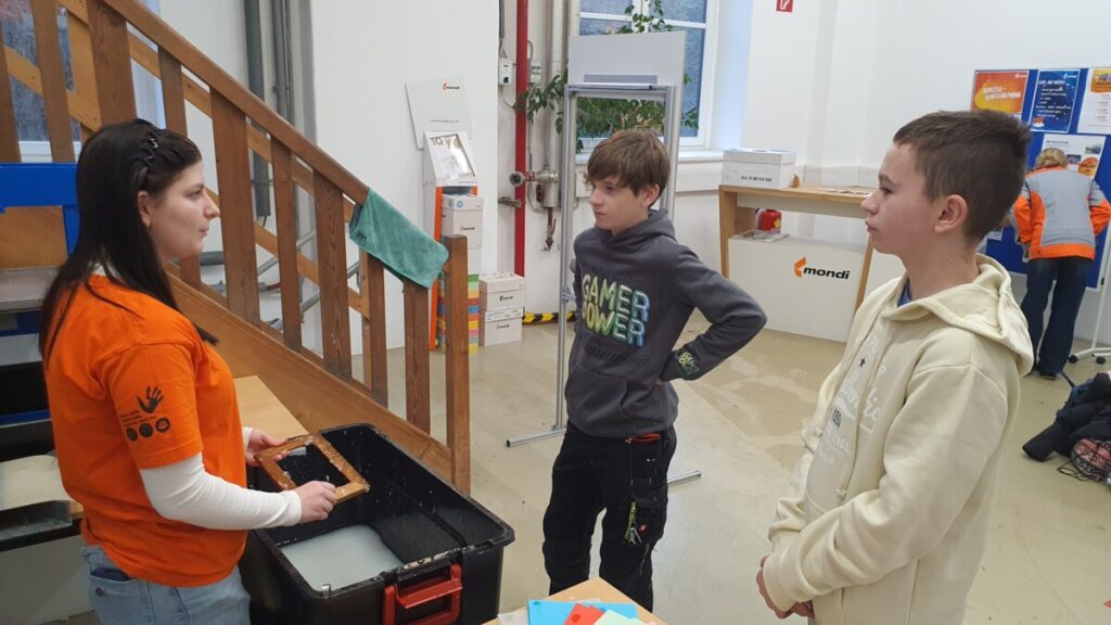 Anschließend folgte ein abwechslungsreicher Stationenbetrieb: Die Jugendlichen konnten selbst Papier schöpfen, kreative Schlüsselanhänger gestalten und sogar einen beleuchteten Christbaum herstellen. Ein weiteres Highlight war das Gespräch mit den Mondi-Lehrlingen. Offen und ehrlich beantworteten sie zahlreiche Fragen zu ihrer Ausbildung und gaben wertvolle Einblicke in ihren Berufsalltag.