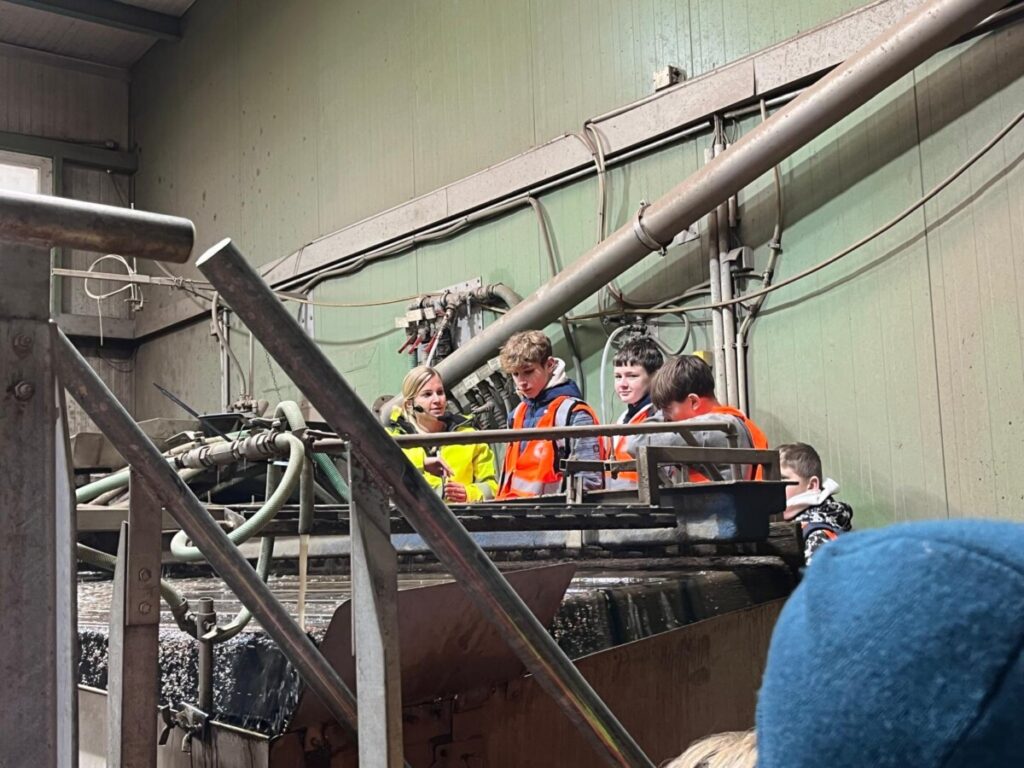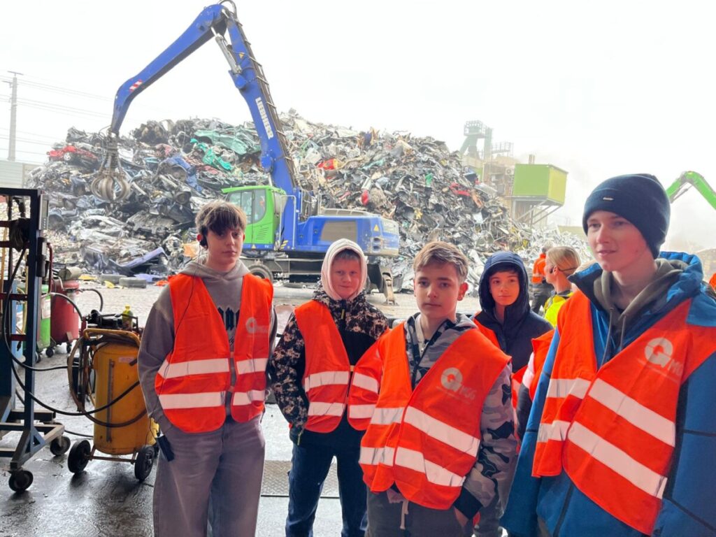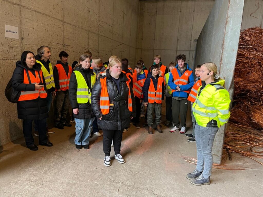 Bei MÜ-GU konnten die Schülerinnen und Schüler erleben, wie Metallabfälle zerkleinert, sortiert und für die Wiederverwertung vorbereitet werden. Besonders beeindruckend war die Beobachtung, wie ein Altauto in seine Einzelteile zerlegt wird. Anschließend erhielten die Klassen bei Metran, einem Betrieb der Müller-Guttenbrunn-Gruppe, Einblicke in die Aufbereitung nichteisenhaltiger Materialien. Dort werden Shredderrückstände, Mischmetalle und metallhaltige Schlacken mithilfe moderner Trennverfahren wie Dichtetrennung, magnetischer Erkennung und Wirbelstromscheidern in sortenreine Fraktionen getrennt. Die Exkursion verdeutlichte anschaulich die Bedeutung von Recycling, Nachhaltigkeit und einem verantwortungsvollen Umgang mit Ressourcen.