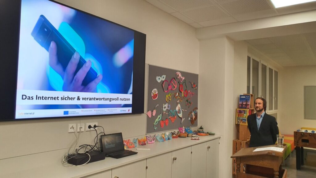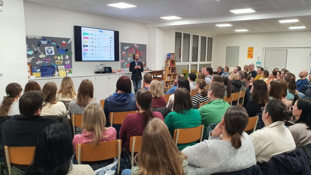 Zahlreiche interessierte Eltern der Volks- und Mittelschule folgten der Einladung zum Safer Internet Vortrag. Dieser Informationsabend stand ganz im Zeichen der digitalen Lebenswelt von Kindern und Jugendlichen. Der Referent, Herr Mag. Mathias Wiener zeigte sehr anschaulich auf, welche Chancen digitale Medien für uns bieten und machte jedoch auch auf mögliche Risiken aufmerksam.