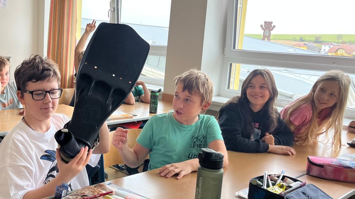 Die Schülerinnen und Schüler lernten auch, was Apnoe bedeutet – das Tauchen ohne Pressluftgerät – und wie wichtig dabei Sicherheitsregeln sind. Die Erklärung des sogenannten „Schwimmbad-Blackout“, eine Ohnmacht durch Sauerstoffmangel nach langem Luftanhalten, zeigte eindrucksvoll, warum man niemals allein tauchen sollte.